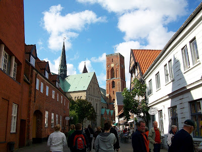 Sunday we had the second breakfast shift so we actually got to sleep in a bit, but we were back on the saddle/painful bicycle seat by 9. Today we decided to go south, in search of the "finest sand in the world," which we were told would be all downhill, but it wasn't! We stopped right out of town at the Baltic Sea Glass studio. They had beautiful blown glassware. I thought I'd found my artwork for the trip... until I learned that it was $2500! We all settled for small stud earrings as a souvenir.
